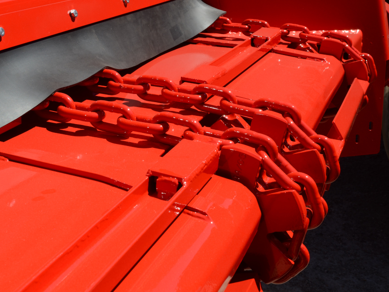 Dämpar effektivt ojämnheter under gödselspridarens drift och transport.