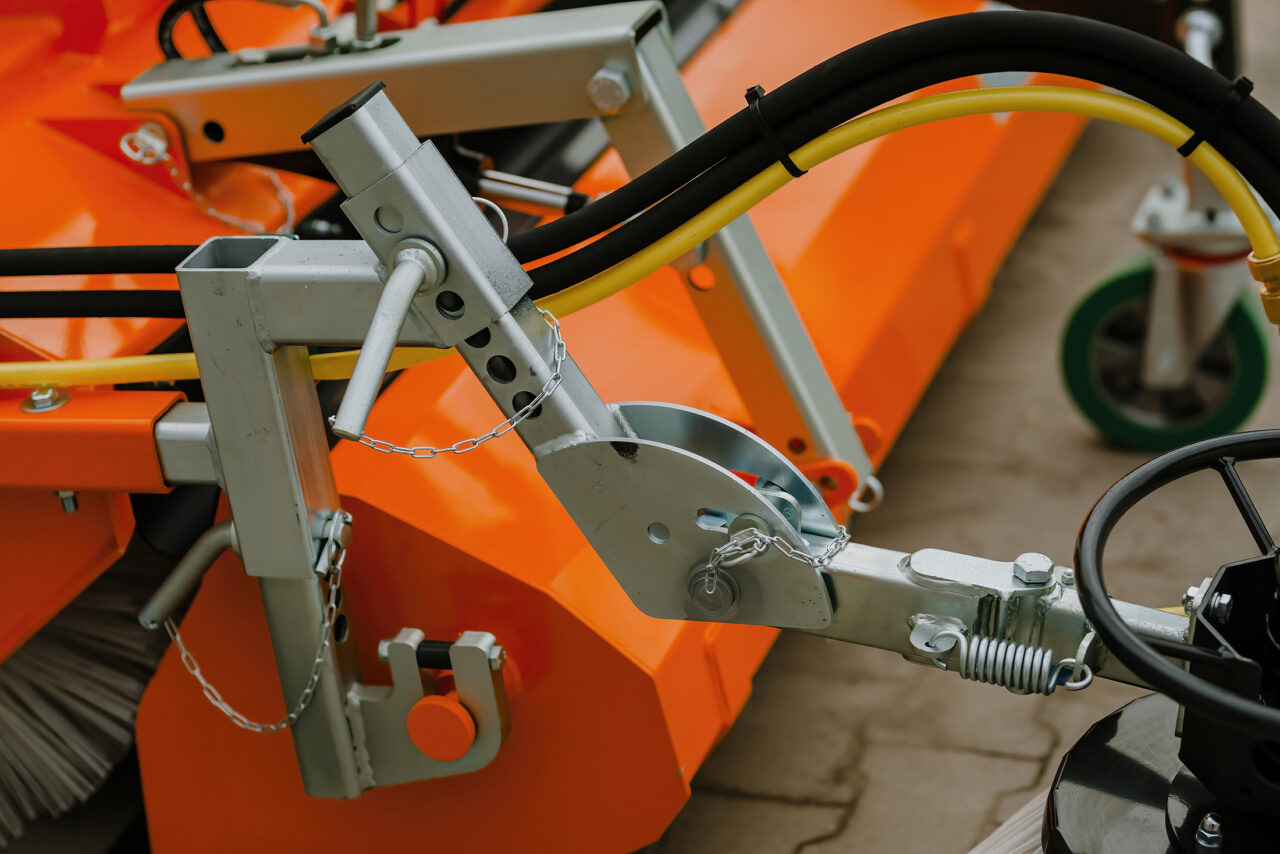 En säkerhetsanordning lyfter borsten vid påkörning av ett hinder. Kan monteras på höger eller vänster sida.