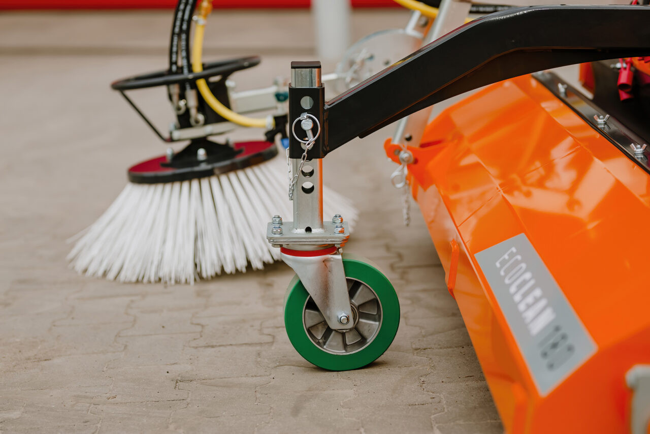 Förhindrar att maskinen pressas ner i marken och gör så maskinen arbeta smidigt även på ojämnt underlag. Detta minskar slitage på maskinen och borsten och ökar driftssäkerheten.