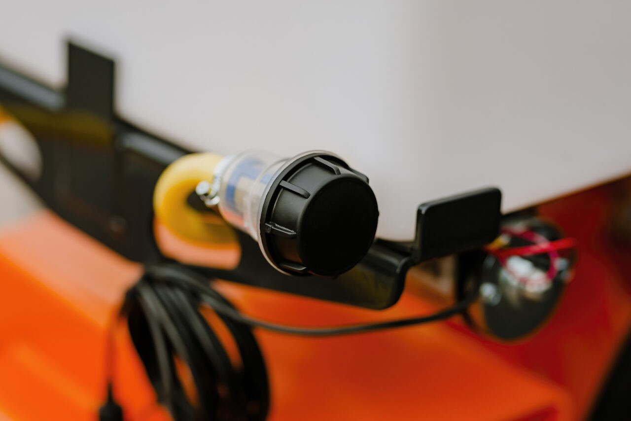 En 175 liter stor vattentank med externt filter och tryckpump (12/24 V) ger dammreducerande effekt. Spraylist komplett med platta munstycken, även för sidoborste.