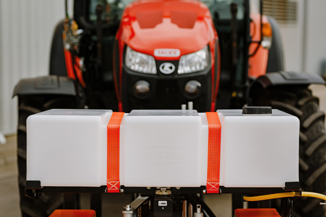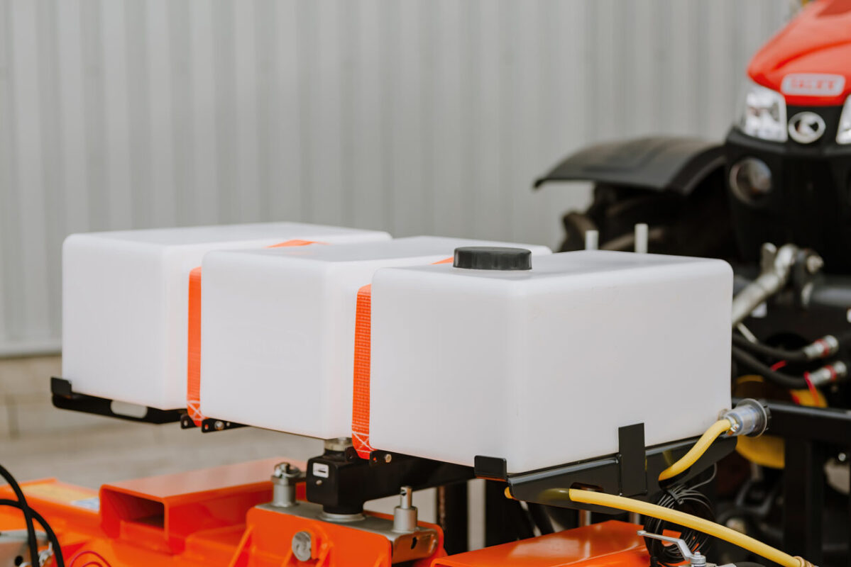 En 175 liter stor vattentank med externt filter och tryckpump (12/24 V) ger dammreducerande effekt. Spraylist komplett med bredspridande munstycken, även för sidoborste.