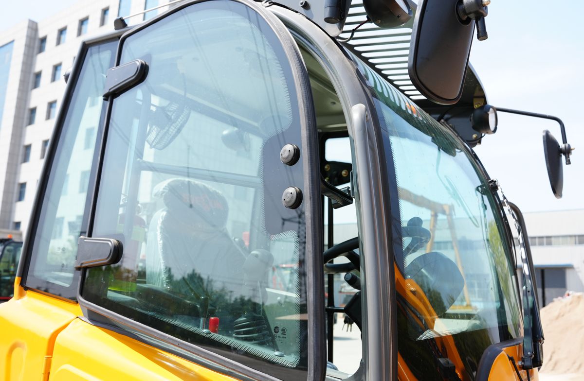 Bred komforthytt med god sikt, lätt insteg, ergonomiska reglage, bekväm förarstol, ställbar ratt, backkamera & radio.