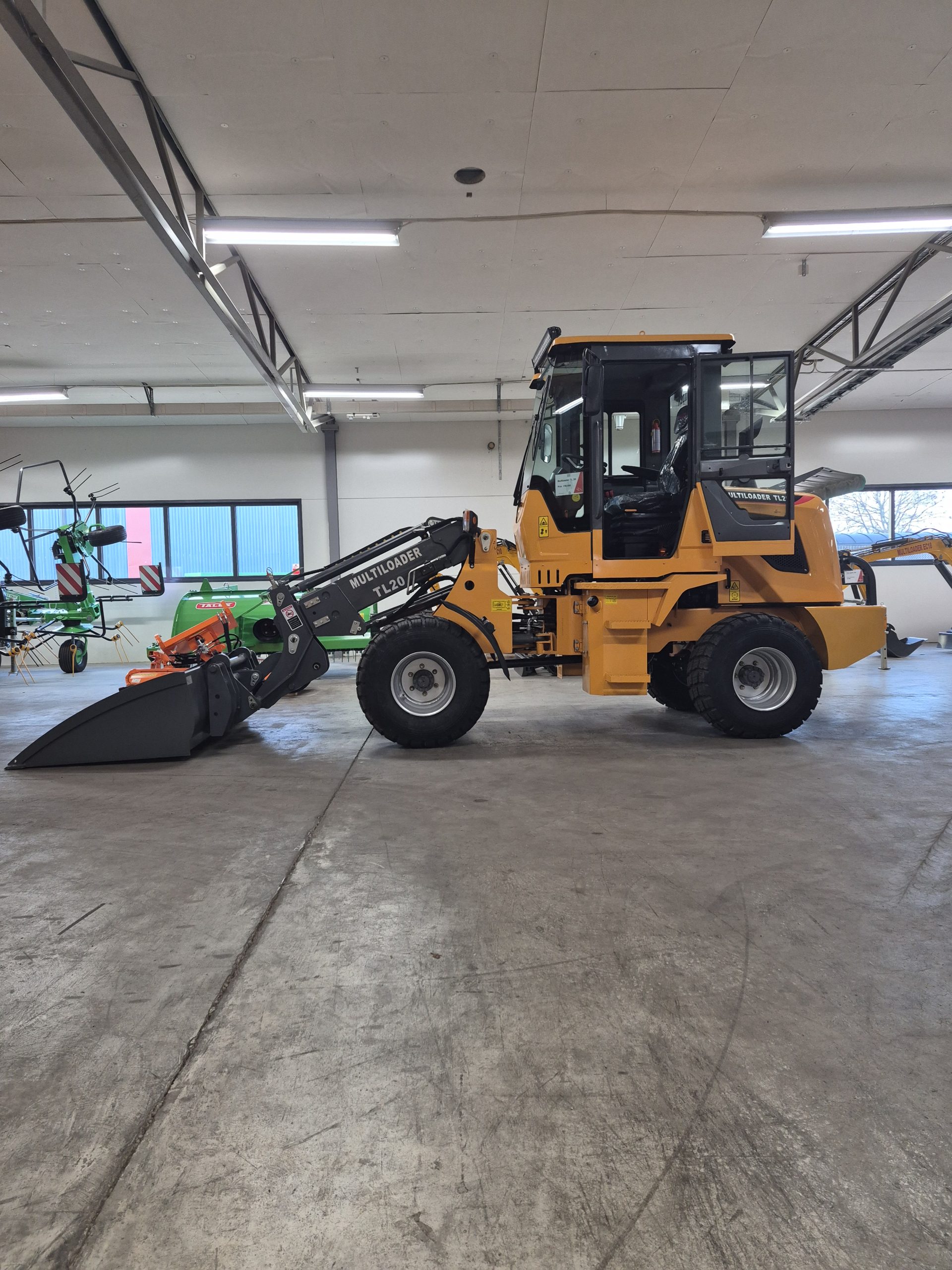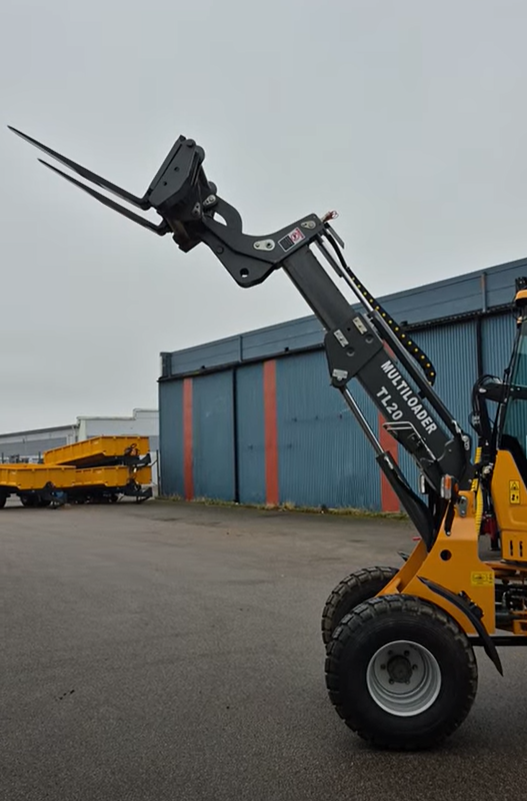 Multiloader TL20 – kompakt och stark hjullastare med 1200 kg lyftkapacitet, 3570 mm lyfthöjd, 4WD och 42 kW dieselmotor. Perfekt för gårdar, entreprenad och materialhantering.