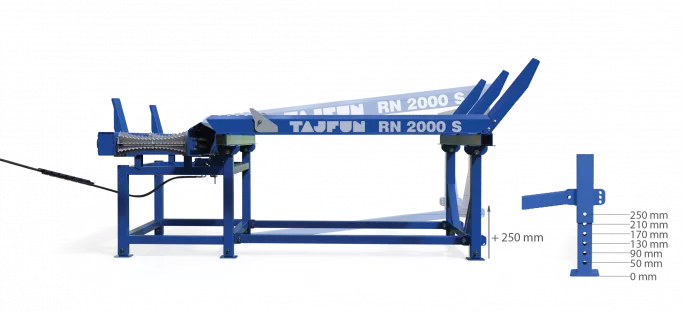 Fungerar som lagring för stockar med liten diameter som operatören manuellt lastar på rullarna. Hydrauliskt drivna rullar matar in stockarna i vedmaskinen. Den drivs av processorns hydraulsystem och styrs av befintliga maskinkontroller. Hela aggregatet kan styras av processorns operatör.