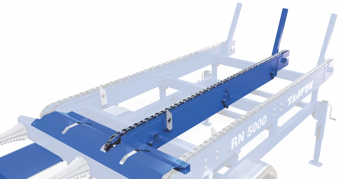 Bogserat matarbord med stor lagringsficka. Enkelt att och ställa in höjd och lutning med de sex höj/sänkbara stödbenen. Kopplas enkelt till vedprocessorns hydrauluttag.