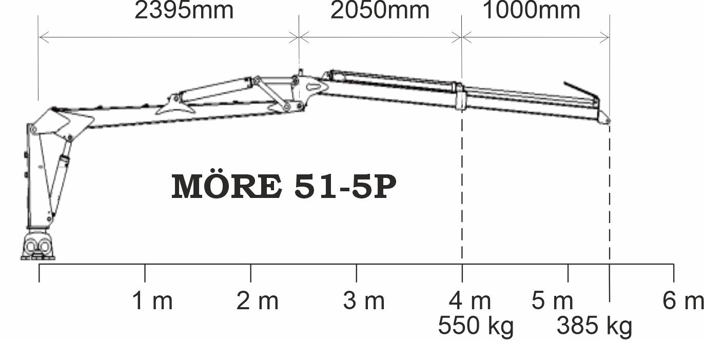 Lyfter 550 kg på fyra meter och 385 kg på full längd.