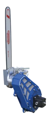 Hydraulisk vinsch med broms för att justera lutningen och för att svänga utlastningsbandet åt vänster och höger.