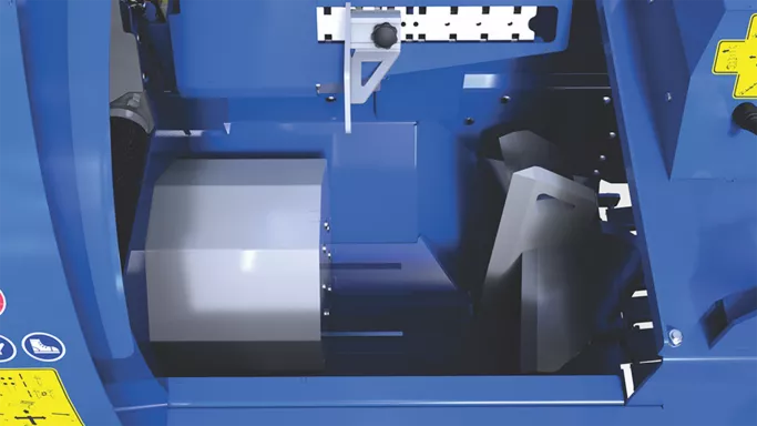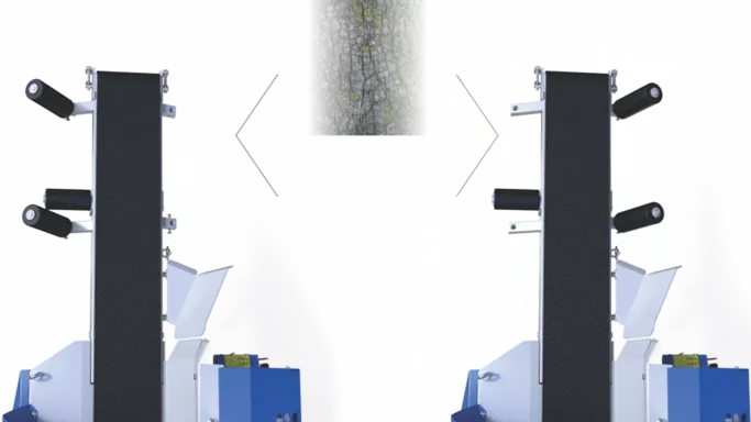 Svängande luckor säkerställer att de kapade bitarna faller rätt i klyven – särskilt den sista biten