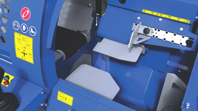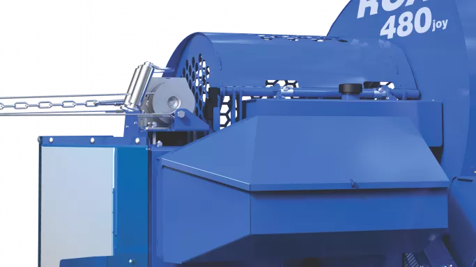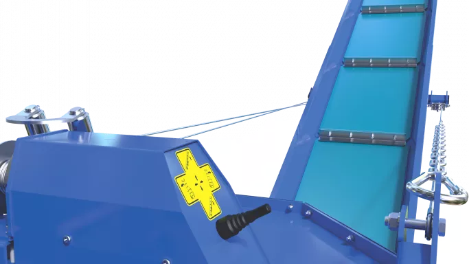 Hydraulisk vinsch med broms för att justera lutningen på utlastningsbandet och för att köra bandet åt båda hållen