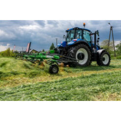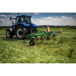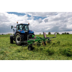 TORNADO 5,50 är en vändare med fyra rotorer som är konstruerad för effektiv utspridning och vändning av ensilage, hö och halm, vilket påskyndar torkningsprocessen och minskar näringsförlusten.