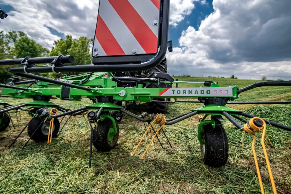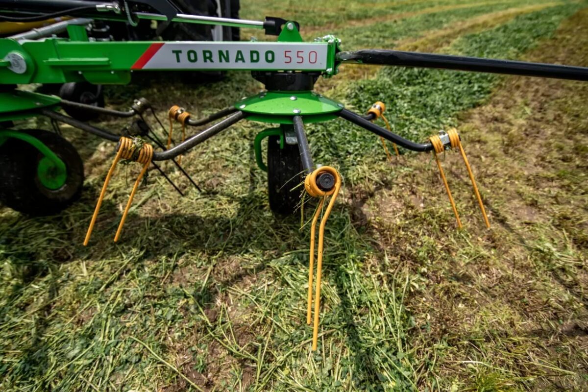 TORNADO 5,50 är en vändare med fyra rotorer som är konstruerad för effektiv utspridning och vändning av ensilage, hö och halm, vilket påskyndar torkningsprocessen och minskar näringsförlusten.